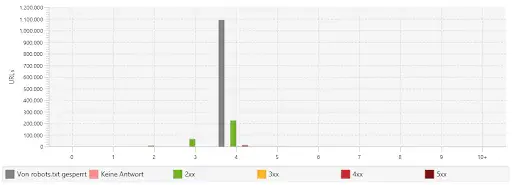 Die interne Verlinkung ist nicht optimal, was bei über 5 Millionen URLs nicht weiter verwundert, jedoch sollte die Anzahl an via robots.txt gesperrten Seiten verringert und zudem geprüft werden, welche Filter tatsächlich indexrelevant sind.