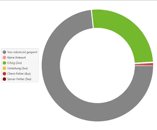 Ein Drittel der URLs ist via robots.txt gesperrt, gut ein Viertel der Seiten gibt den Status Code 200 aus. adidas.de hat relativ wenige intern verlinkte 404-Fehlerseiten und sehr wenig intern Verlinkte 301-Weiterleitungen. Das ist vor allem deshalb beeindruckend, weil dies bei so einer Masse an URLs kaum zu verhindern ist und dafür die Anzahl an Broken Pages sehr gering ist. Dennoch sollten die internen Links auf 404-Fehlerseiten und auf Weiterleitungs-URLs intern angepasst oder entfernt werden.