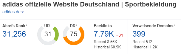 Bewertung Backlinks adidas.de