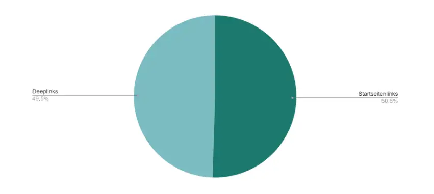 49,5 % der Backlinks von adidas.de (ohne Subdomains) sind Deeplinks. Es handelt sich um eine sehr gesunde Deeplink-Ratio, da der E-Commerce-Durchschnitt knapp unter 50 % ist.