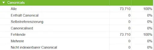 Der Canonical Tag fehlt auf allen Seiten, wie oben im Screenshot zu erkennen. Um Duplicate Content zu vermeiden, sollte dieser dringend auf allen Seiten ausgezeichnet werden. Auch ein selbstreferenzierender Canonical (ein Canonical der URL mit dem Inhalt der eigenen URL) ist empfehlenswert um sicherzustellen, dass es sich um die Original-Ressource handelt, selbst wenn es keine Duplikate gibt.