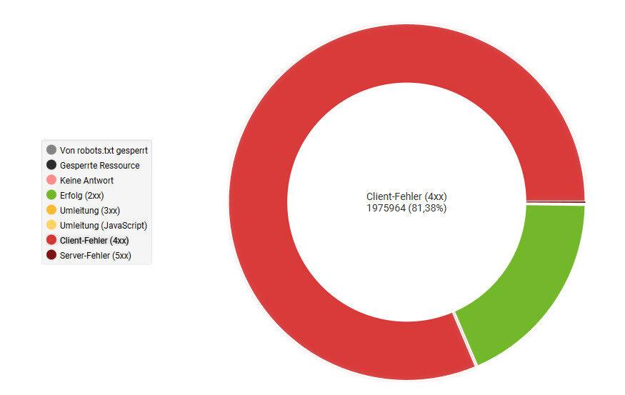 Bei bayer.com geben knapp 2 Millionen URLs einen 403 Response Code aus. Dieser Code kann verschiedene Ursachen haben. Oft bedeutet er, dass diese Adressen gegen unberechtigte Zugriffe durch die Websitenbetreiber:innen gesperrt worden sind – im Gegensatz zu einem 404 Fehler, bei dem die vorhandenen URLs gelöscht wurden.