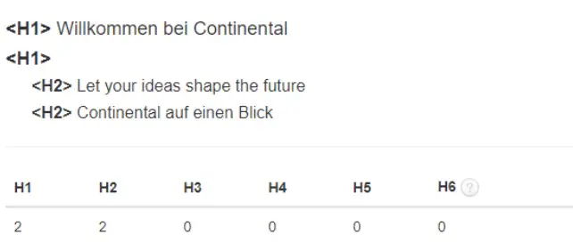 continental.com hat bisher bei der OnPage-Optimierung kaum Optimierungen aufzuweisen. Der Keywordfokus von continental.com ist gegeben. Die Hauptkeywords werden anhand des Nutzer-Suchverhaltens und des Suchvolumens gewählt. Durch Schaubilder, Grafiken und häufige Nutzerfragen könnte weiteres Potential ausgeschöpft werden, um die User besser abzuholen. Außerdem sollte die H Struktur überarbeitet werden, um die Lesbarkeit für die Suchmaschine zu optimieren.