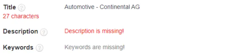 continental.com bekommt in Sachen SEO-Optimierung der Website die Note 3-. Dies ist der Durchschnitt der jeweiligen Teilnoten der betrachteten Kategorien.