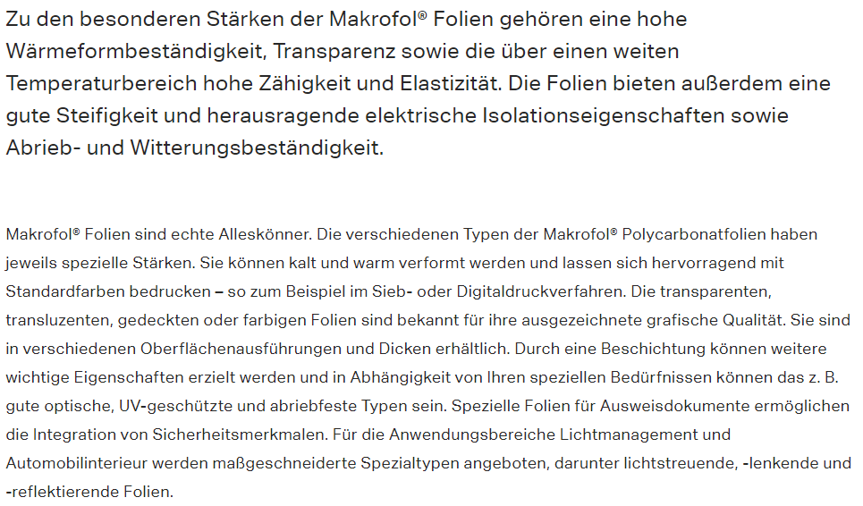 - Was unterscheidet Makrofol zu anderen Folien?