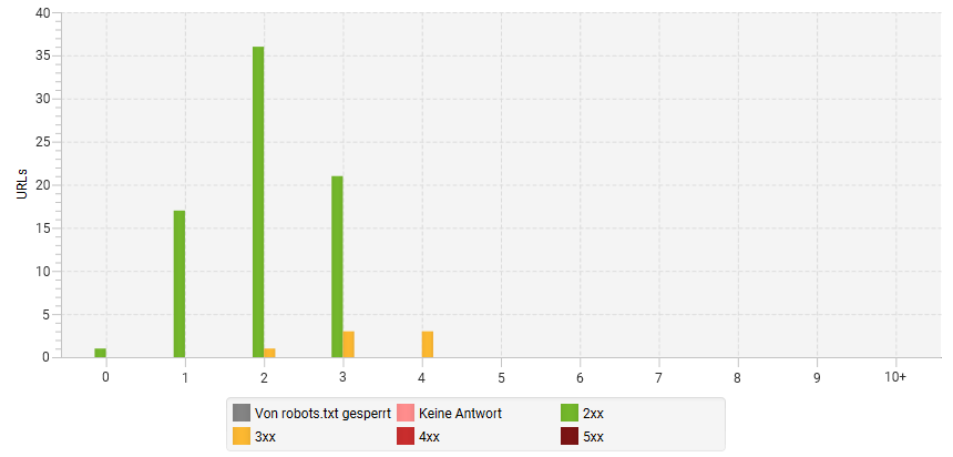 Insgesamt ist die Domain sehr gepflegt, es sollten jedoch intern nur URLs mit Status Code 200 verlinkt werden, das heißt diese Links sollten entweder entfernt, oder auf die Zielseite angepasst werden.