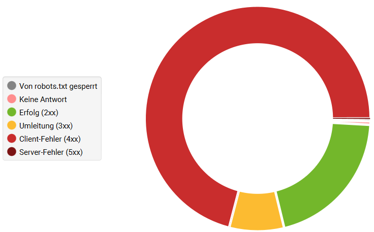 Da wir mit dem Googlebot gecrawlt haben, kann es durchaus sein, dass Google beim crawlen das selbe Problem hat, was sich dann ggf. negativ auf das Crawling-Budget auswirken kann. Im zweiten Crawl zeigen sich nur auch deutlich mehr 3xx Status Codes, insgesamt 24.867 URLs.