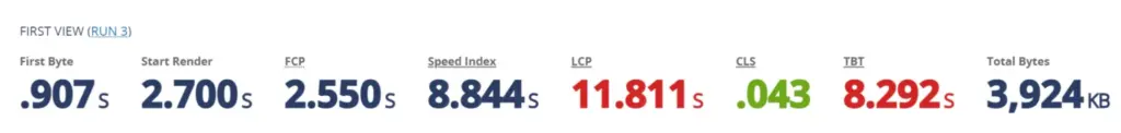 - LCP: Google empfiehlt hier einen Wert von unter 2,5 Sekunden. infineon.com überschreitet diesen mit 11,811s extrem stark.