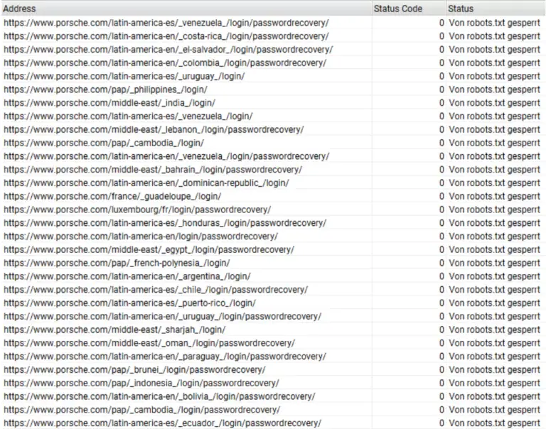 Gesperrte URLs von porsche.com