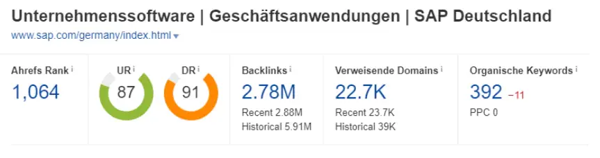 Bewertung interne Verlinkung www.sap.com/germany/index.html