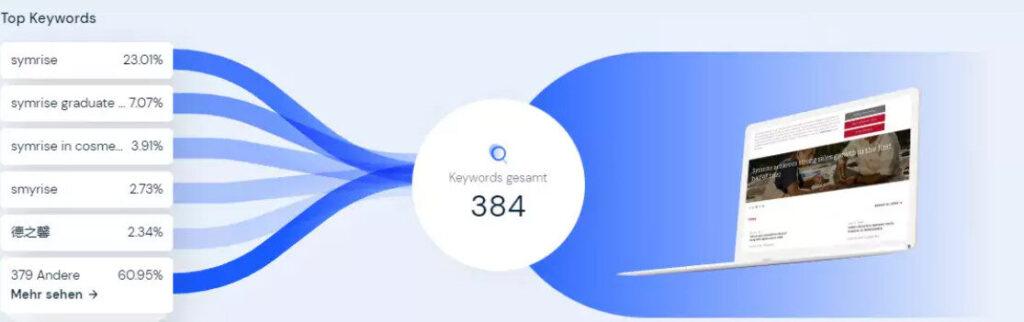 Die Top-Keywords des organischen Traffic sind auch hier wieder Brand-Keywords wie “symrise” und „symrise graduate”. In den Top 5 findet sich außerdem der Begriff “symrise in cosmetic”, welche den Bezug zu Aromen und Düften herstellt.