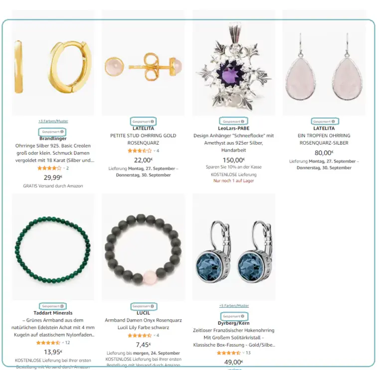 Je nach Ausrichtung der Anzeigen wird die Ausspielung zum Beispiel über die Einbuchung von Keywords gesteuert und auf der Suchergebnisseite ausgespielt. Es gibt drei Ausspielungsslots, in denen die Sponsored Products ausgespielt werden.