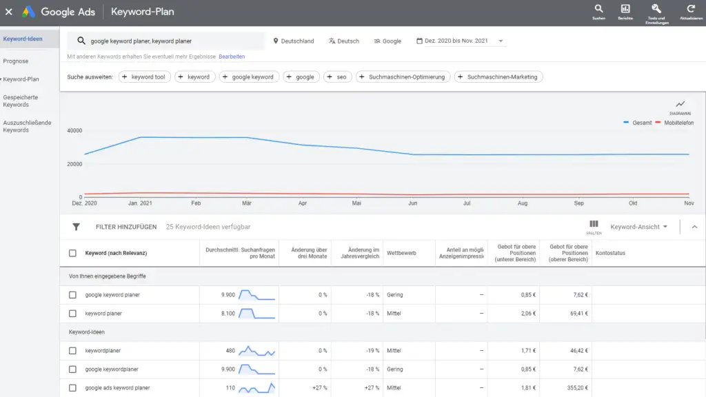 - Der Google Keyword Planer liefert bei einer Anfrage nicht alle vorhandenen Keywords aus, sondern nur die Begriffe, die genug Nachfrage haben.