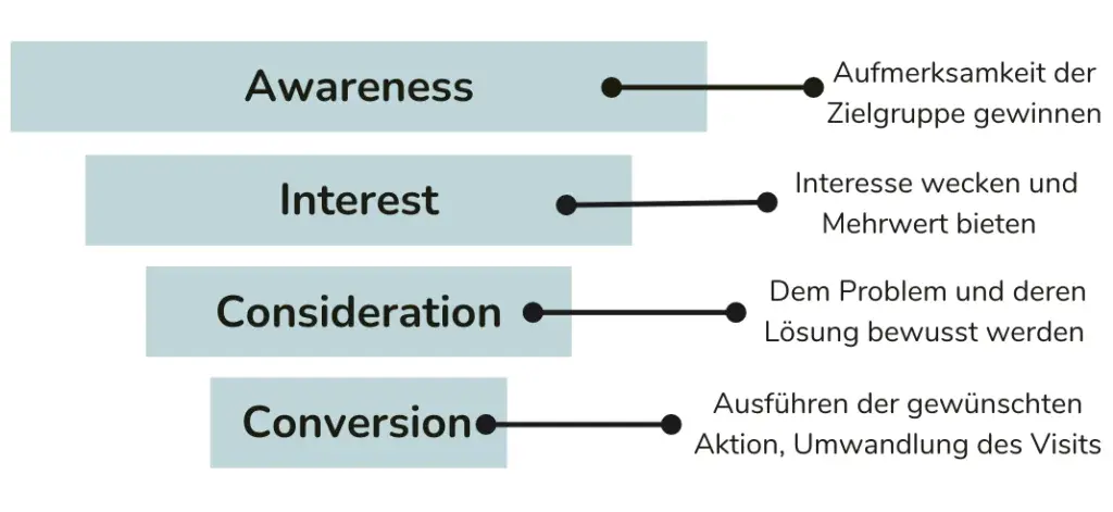 Mithilfe einer Content Strategie werden die Planung, Erstellung und Verbreitung von Inhalten aufeinander abgestimmt. Zum schaffen von Synergien wird die Marketingstrategie kanalübergreifend gestaltet, um einen Wiedererkennungswert auf allen Plattformen für Ihr Unternehmen bieten zu können. Das Grundprinzip lässt sich in einer Funnel-Strategie darstellen: