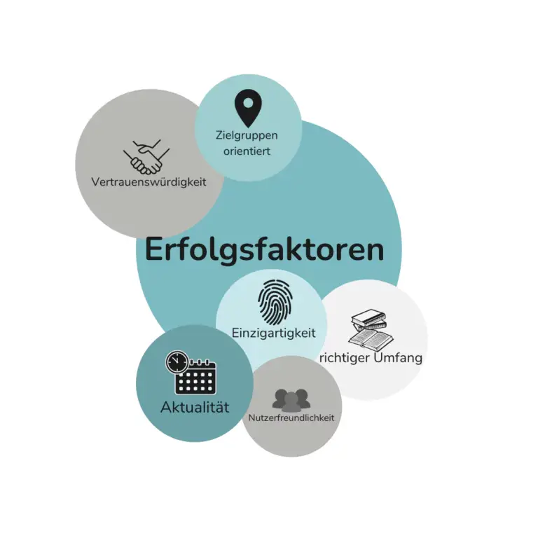 - Um den Erfolg des Contents anhand von SEO Kriterien feststellen zu können, wird der Content nach Erfolgsfaktoren beurteilt. Diese Kriterien beleuchten die Erreichbarkeit, die Relevanz, die technischen Faktoren und die Zufriedenstellung der Nutzer.