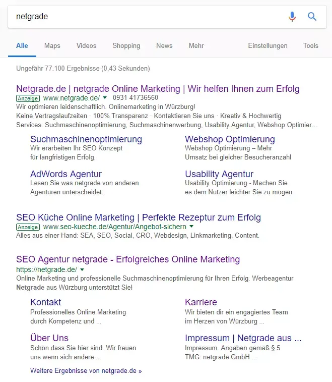In diesem Beispiel würde die Suchmaschine nun alle Seiten anzeigen, die mit netgrade zu tun haben, aber nicht die, die das Wort „seo“ mitinbegriffen haben.