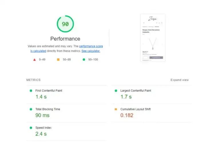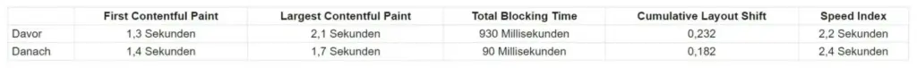 Durch unsere Optimierungsmaßnahmen konnten wir bei fast allen Metriken der Core Web Vitals eine positive Verbesserung erzielen. Entsprechend hat sich der Performance-Score um insgesamt 24 Punkte von 66 auf 90 verbessert! Es zeigt sich also, dass man durch ein paar einfache Handgriffe sowohl das Ranking als auch die User Experience einer Seite verbessern kann, was folglich auch einen positiven Effekt auf die Conversion Rate und andere wichtige Kennzahlen hat.