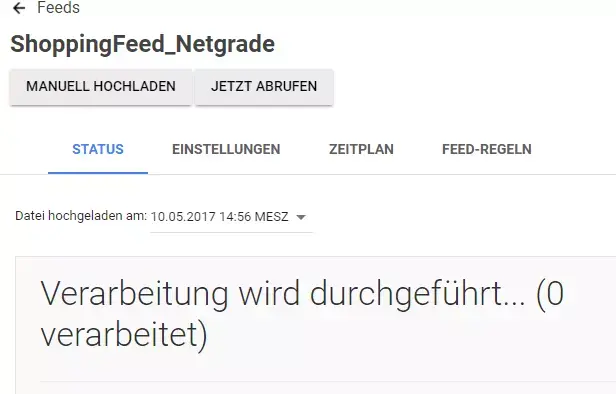 Der Feed kann nun abgerufen werden und es werden uns eventuelle Fehler, die sich im Template bei der Konfiguration des Shopware Produktexports eingeschlichen haben, angezeigt.