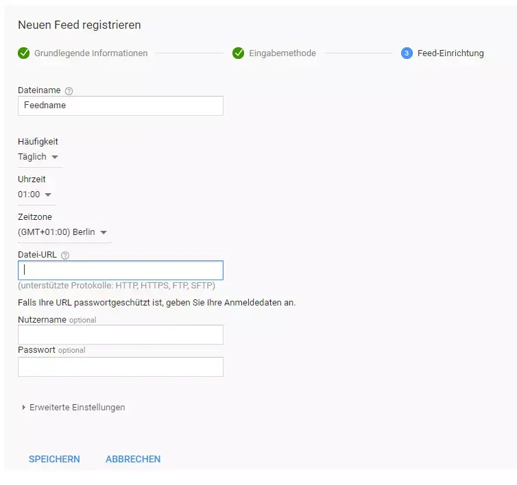 Speichern und der Feed ist erstellt.