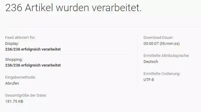 Hier könnt ihr genaue Fehlerdiagnosen einsehen. Alle aktiven Artikel können nun über eure Google Shopping-Anzeigen ausgespielt werden.