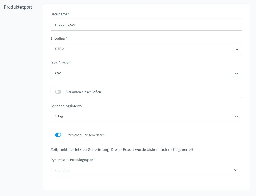 Die dynamische Produktgruppe ist jene Einstellung, die bei einem Produktexport in den Tabs bei „Artikel Filter“ und „weitere Filter“ zu finden war. Die Aufteilung macht Sinn. So könnt Ihr eine dynamische Produktgruppe erstellen und für diese dann verschiedene Verkaufskanäle nutzen ohne dass Ihr jedes Mal die passenden Artikel filtern müsst.