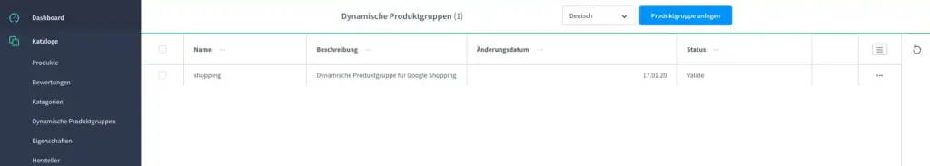Damit Ihr aber einen Verkaufskanal erstellen könnt, der für Google Shopping aufgerufen werden kann, müsst Ihr zuvor eine dynamische Produktgruppe erstellt haben.